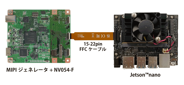 弊社ではこの Jetson™Nano のMIPI CSIカメラ用コネクタに、MIPIジェネレータを接続する為の接続ボード(NV054-F)を用意しております。このキットは標準的な販売品目ではないので、詳細は弊社までお問い合わせください。