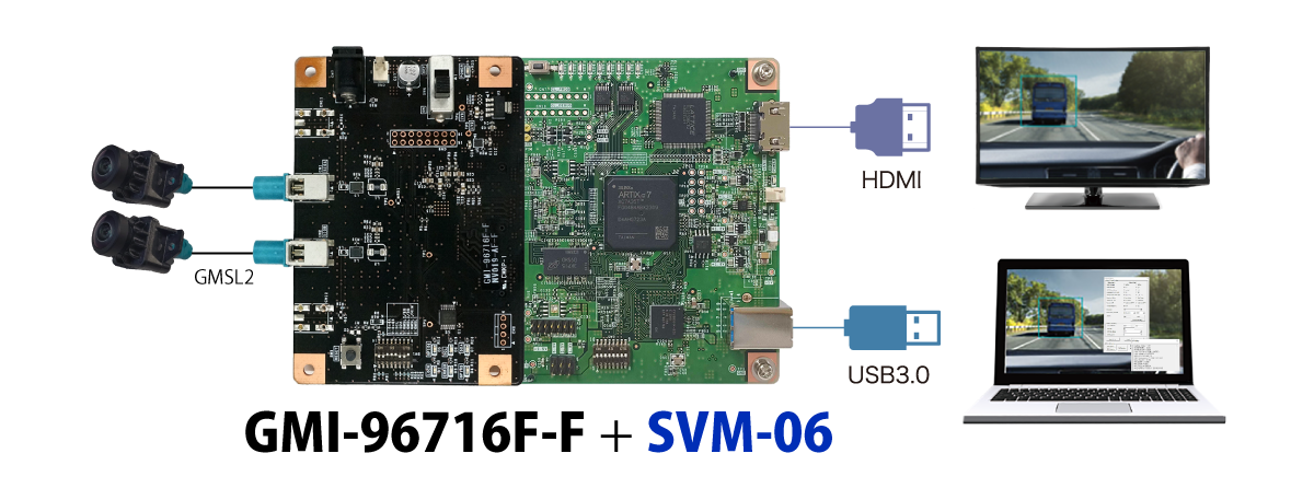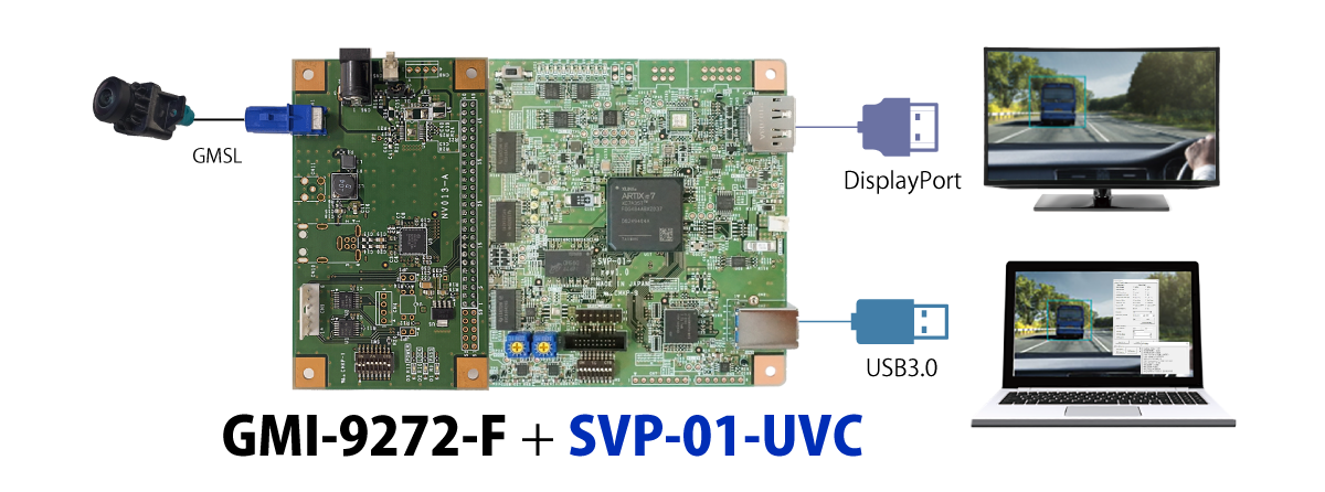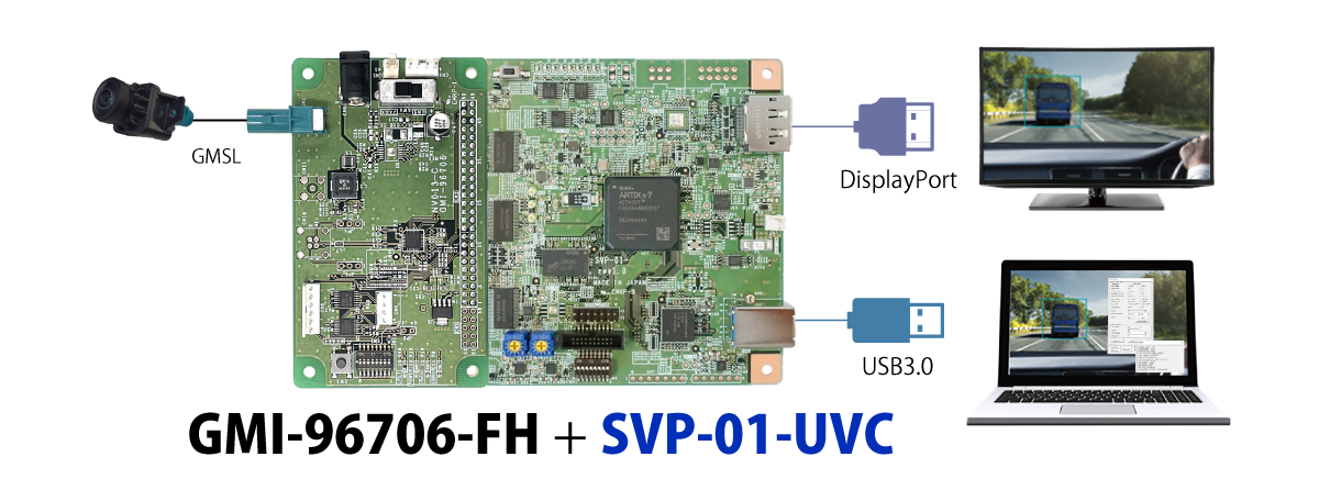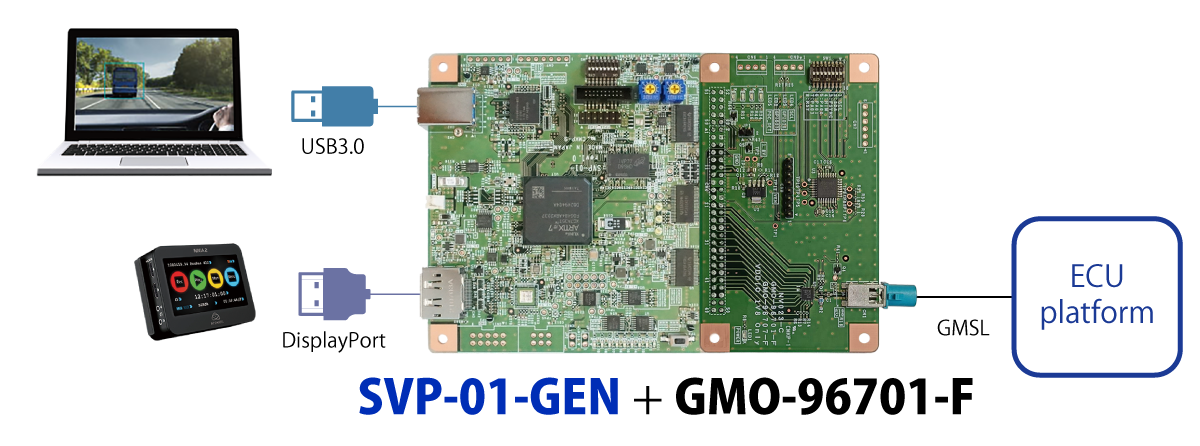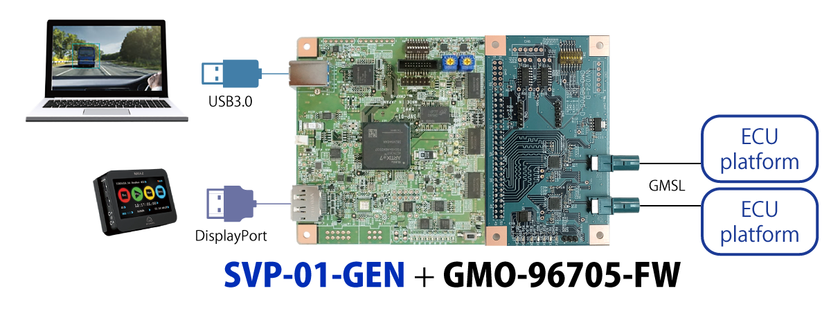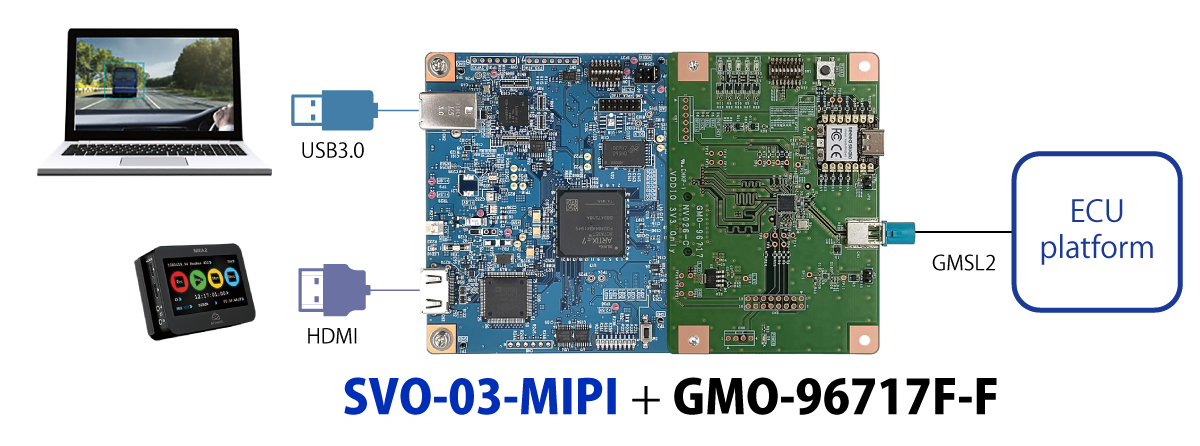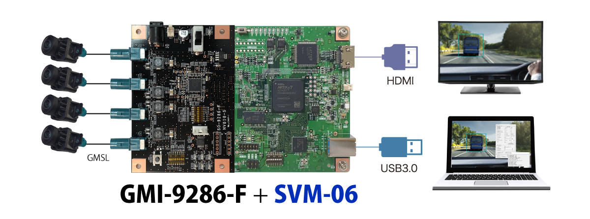 TI社FPD-Link III、Analog Devices社GMSL、Sony社GVIF2の車載カメラ画像を、弊社SVシリーズに接続する為のボードです。