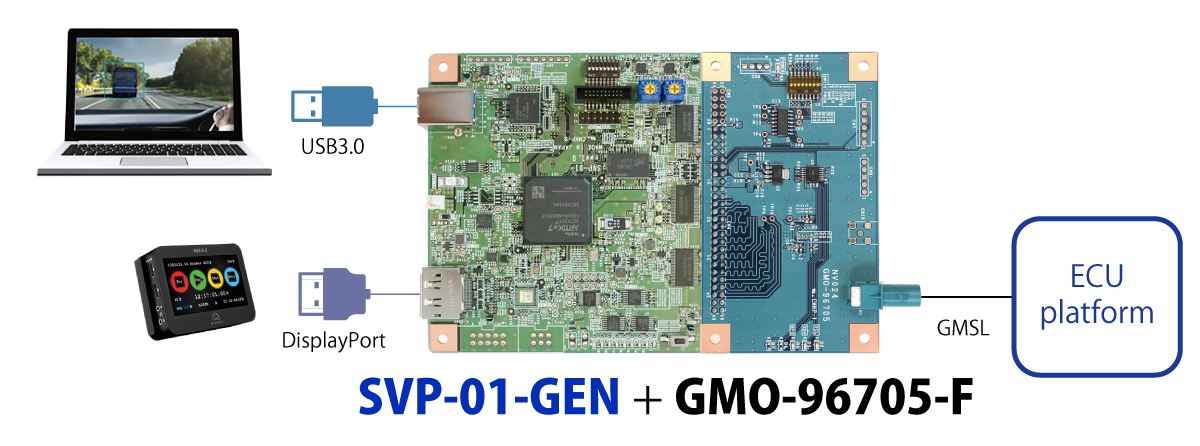 SerDesインタフェースボードは、車載カメラ伝送規格のTexas Instruments社 FPD-Link III、Analog Devices社 GMSL、Sony社 GVIF2に適合したSVシリーズに接続する為のインタフェースボードです。