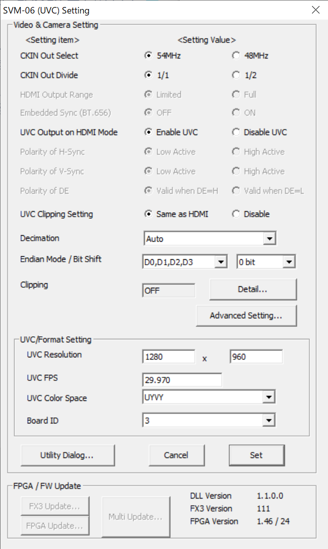 ※UVC/Format Setting の部分は、SVO-03-MIPI スタンドアローンモードの設定ファイルと同じにします。