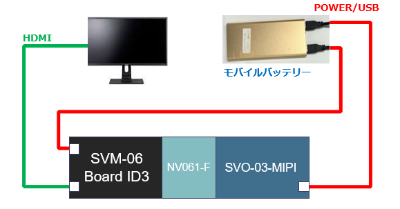 では実際にSVO-03-MIPIとSVM-06のボードの設定を行い、モニターに出力してみます。