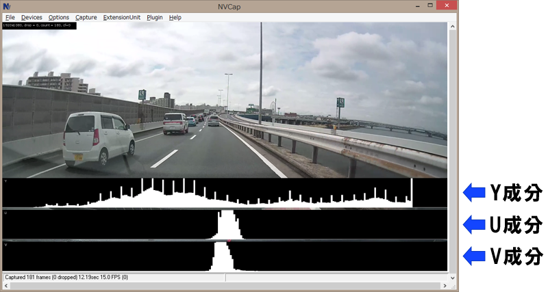 画像のY/U/V 3成分を表示