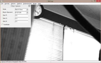 - NVCap付属のフィルタで、RAW8,10,12,16,20 フォーマットの画像をグレー表示、またはカラー表示(Bayer->RGB変換) するフィルタです。