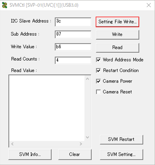 設定ファイルは、イメージセンサとSerDesデバイスへのI2C経由のレジスタ設定情報を含むスクリプトファイルです。シンプルなフォーマットで、メモ帳で編集も可能なため、誰でも簡単にレジスタ設定の調整が可能です。