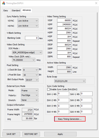 希望の画像サイズ、フレームレート、V-Blankを入力しOKを選択後、Applyを選択