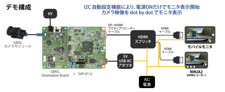 ①GMSLのカメラ映像をHDMIモニタとNINJA2(HDMIレコーダー)に表示させるデモ