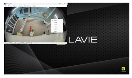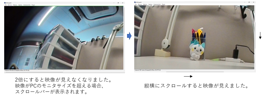 NVCap画面サイズが固定化されます。表示領域を右クリックすると倍率選択ができます。0.5倍 ~ 4倍まで設定ができます。