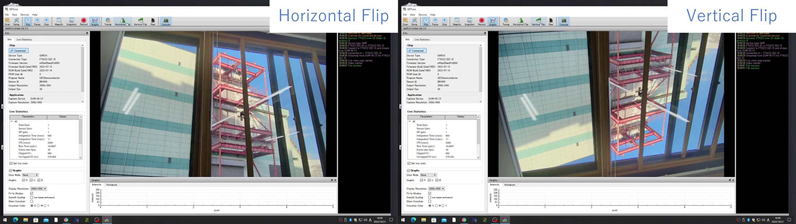 ISPの設定で水平反転、垂直反転などの機能を動作させることができます。