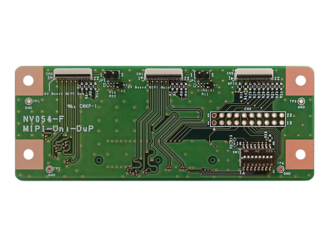 The NV054-E is a board for outputting MIPI CSI-2 video signals input from a SAMTEC connector to an FFC connector via pass-through.