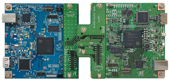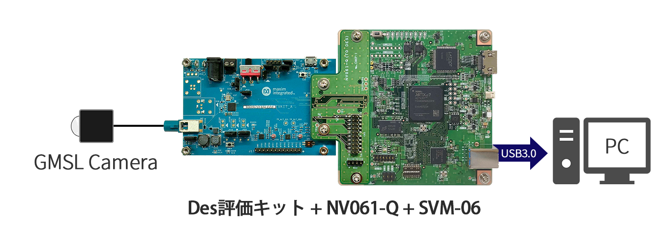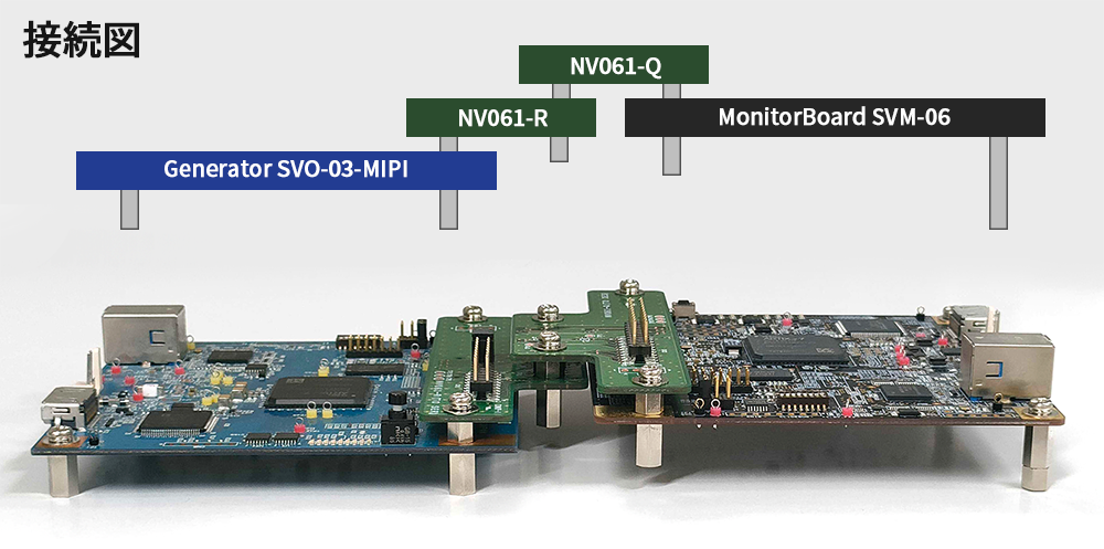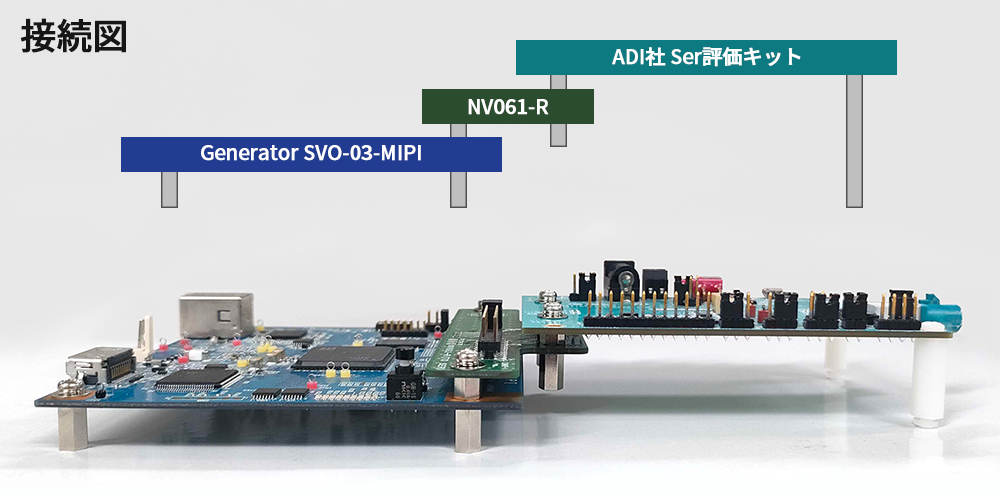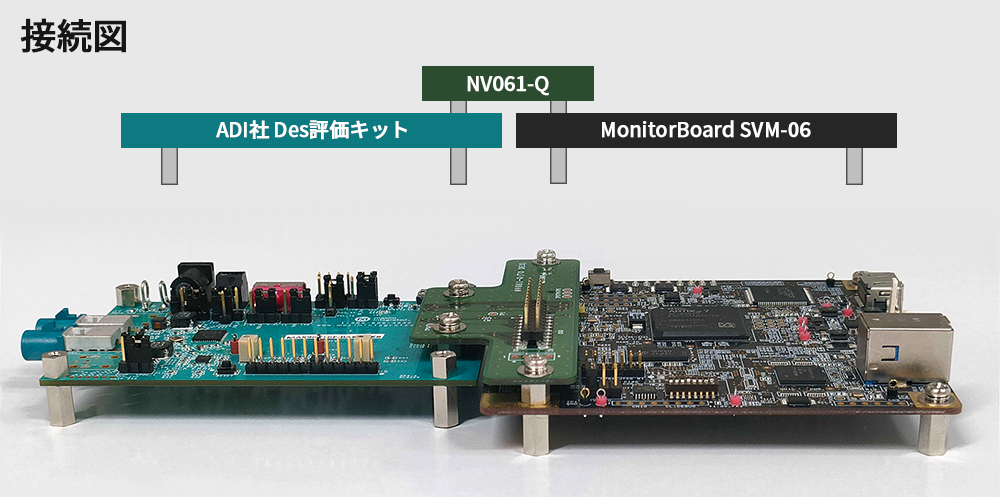 Analog Devices社の GMSL Serializer評価キットと弊社のMIPIジェネレータSVO-03-MIPIを接続する為の接続ボード「NV061-R」と、同社の GMSL Deserializer評価キットと弊社のモニターボードSVM-06を接続する為の接続ボード「NV061-Q」を開発しました。