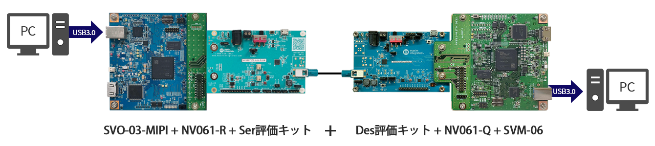 弊社で開発実績のないSerDes ICの評価も、Analog Devices社の GMSL 評価キットをお持ちであれば、以下のように簡単に評価を進められます。