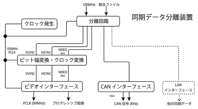 そして、映像データと、例えばCANデータとを同時に検査することや、同時に試験する必要がある場合は、複数種類の信号を別々の再生装置から再生させて各種の処理を行っていました。場合によっては、すべてコンピュータの上でのシミュレーションで行わざるを得ない場合も生じました。