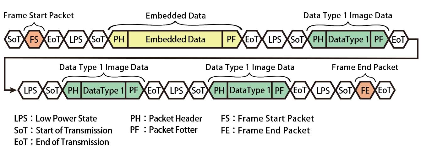 このEmbedded Dataにはフレームカウント値(タイムコード)、ゲインの値(アナログ・デジタル)、ホワイトバランス、露光時間、HDR情報やセンサーの温度・電源モニタ情報などのセンサーに関する様々な情報が入れられていることが多いです。
