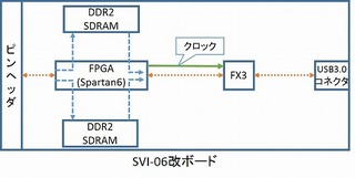 取り込んだデータは先程説明した通りヘッダ付加等の処理を行いDDR2 SDRAMに格納されます。 格納されたデータはFPGAがフロー制御を行いながらFX3へと渡されます。