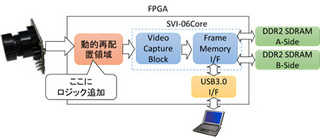 今回SVI-06のFPGAプラグイン機構を利用して、前処理ブロック部分にRAW現像IPとしてデモザイク処理、ゲイン補正、ガンマ補正を入れました。FPGAリソースとしてロジック部分10%、ブロックRAM部分で30%程度の使用で済んでいます。