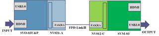 HDMIの信号を取り込んでUSB3.0ポート、もしくはパラレルポートに出力するためのボードです。パラレルポートに出力するモードで使用し、NV021-Aへデータを転送します。