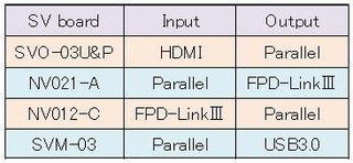 【デモで使用した各SVボードの入力/出力規格】