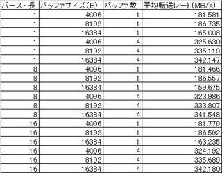 DMAバッファの作成で速度に影響があるのは、DMAのサイズとバッファ数になります。