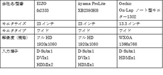 今回使用するモニターの大まかなスペックは左図の通りです。